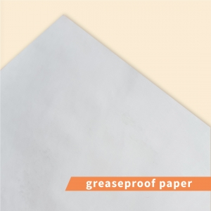Greaseproof sering digunakan untuk produk berminyak seperti kentang goreng, ayam goreng, donat, dan lain sebagainya. Hal ini disebabkan karena kertas greaseproof memiliki daya tahan yang cukup tinggi terhadap minyak. Kertas greaseproof merupakan kertas food grade, istilah food grade di sini berarti tidak ada risiko terhadap kesehatan dan aman jika digunakan kontak langsung dengan makanan. Selain itu kertas greaseproof juga cocok digunakan untuk makanan dalam kondisi panas, seperti burger maupun kebab karena greaseproof memiliki karakterisik tahan terhadap suhu panas, bahkan dapat di-microwave. Greaseproof berwarna putih sedikit transparan dan biasanya digunakan untuk wrapping paper maupun paper bag yang memiliki pilihan ketebalan 40 gsm dan 50 gsm.