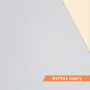 Kertas ivory memiliki warna putih di sisi dalam maupun luar. Kedua sisi kertas ivory memiliki penampakan permukaan yang berbeda, yaitu penampakan lebih mengkilap di satu sisi dan penampakan tidak mengkilap/matte di sisi lainnya. Oleh karena itulah, banyak entrepreneur memilih kertas ivory sebagai bahan packaging karena kesan eksklusif yang ditimbulkan, meskipun harga kertas ivory sedikit lebih mahal daripada kertas duplex. Sifatnya yang kaku dan kokoh menjadikan ivory sangat cocok digunakan untuk packaging berbagai produk, mulai dari makanan hingga produk seperti parfum, kosmetik, produk kesehatan, dan lain-lain. Kertas ivory tersedia dalam beberapa pilihan gramatur yaitu 210 gsm, 230 gsm, 250 gsm, 270 gsm, 300 gsm, 350 gsm, 400 gsm. Semakin besar angka gramatur, semakin tebal dan kokoh pula kertasnya.