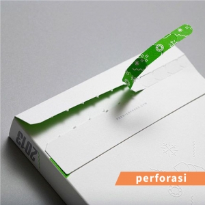 Perforasi adalah teknik untuk melubangi kertas membentuk garis putus-putus. Perforasi bertujuan untuk membuat kertas agar mudah disobek. Penggunaan perforasi biasanya digunakan pada packaging seperti kebab, crepes, masker medis, sarung tangan, dan lain-lain.